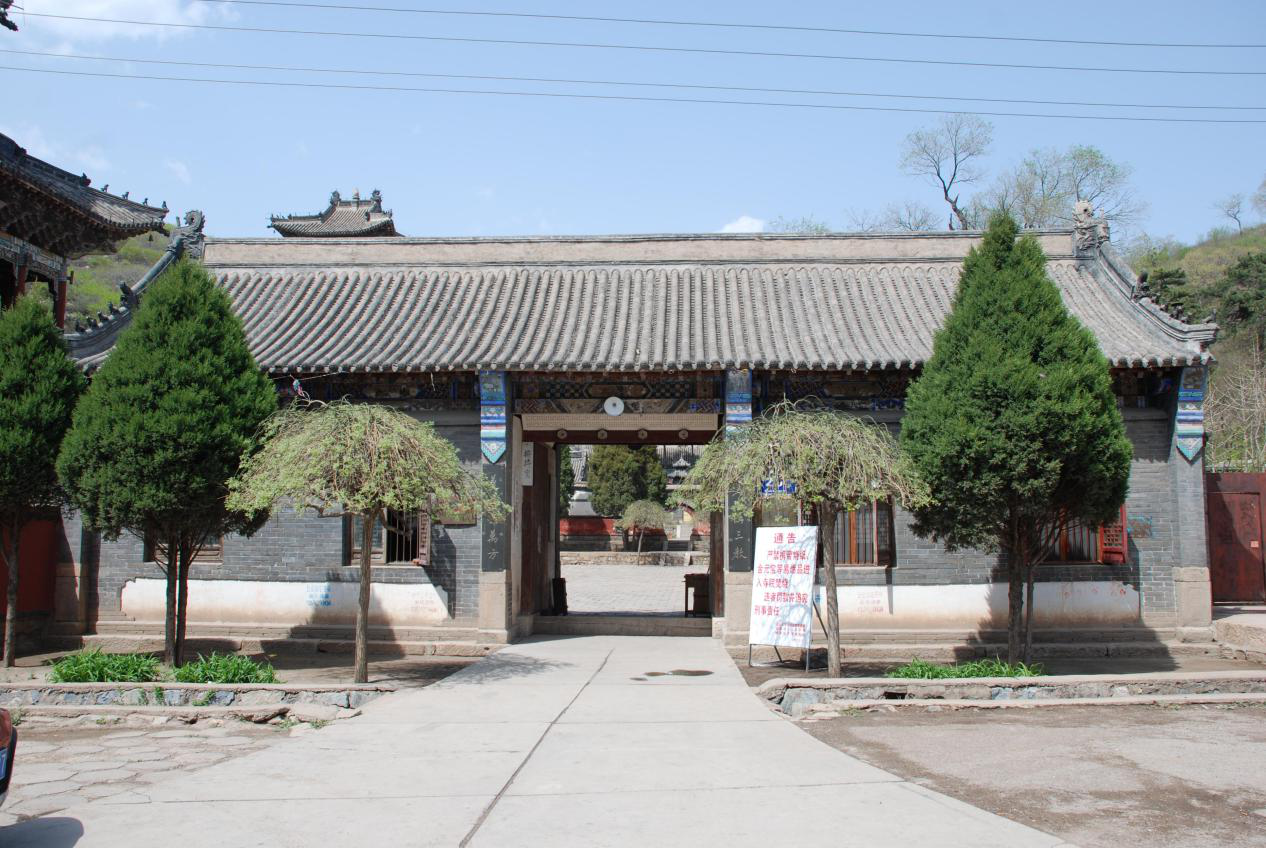 其后逐年扩建形成规模宏大的古建筑群,占地面积 15000 平方米。控制地带约4平方公里。寺院三面环山,山上松柏常绿,风景秀丽,大自然奉献几项 奇观令人赞赏。南面平坦地开辟出单成体系的古建筑群,形成三教合一大寺院。寺院座北面南,其布局造型规整,构筑新颖,处处体现儒、释、道的三教特色。